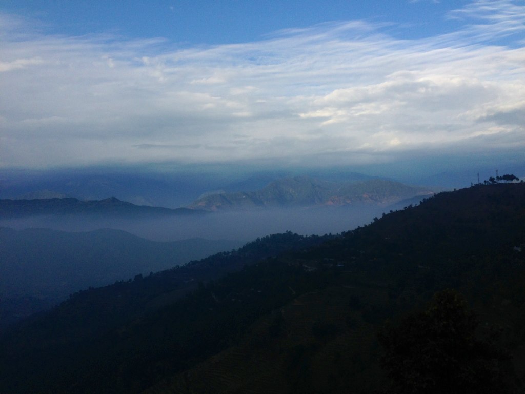ポカラの街には雲が溜まり、霧の中…