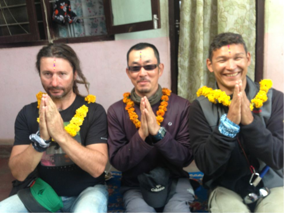 その後はYetiでも額にティカをしてもらい、花の首飾りをもらいました。