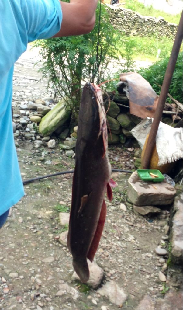ここで捕れたナマズ。1m程の大きさでしたが、見た目は… でも結構 美味しいです。