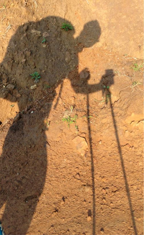 朝日に映る影