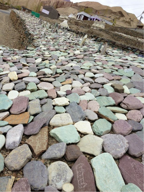 チベット文字が彫られた石の数々…