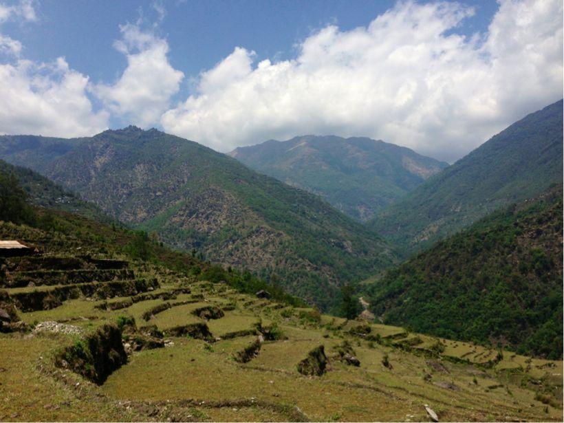 宿を出たのが遅目の9時、ゴレパニから1時間程歩いた時、大きなカルカ(木が生えていない場所)が見えた。