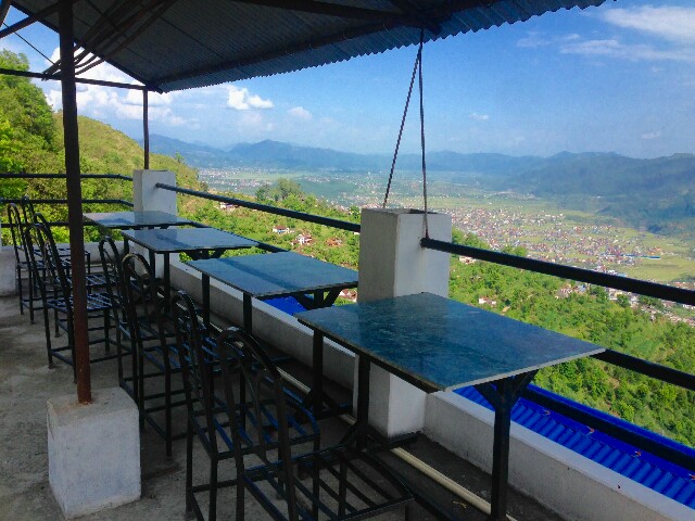 ルーフトップ からの眺めが悪いわけではないが、上のレストランがポカラで一番の絶景場所なだけに、昼間の勝負はしません。