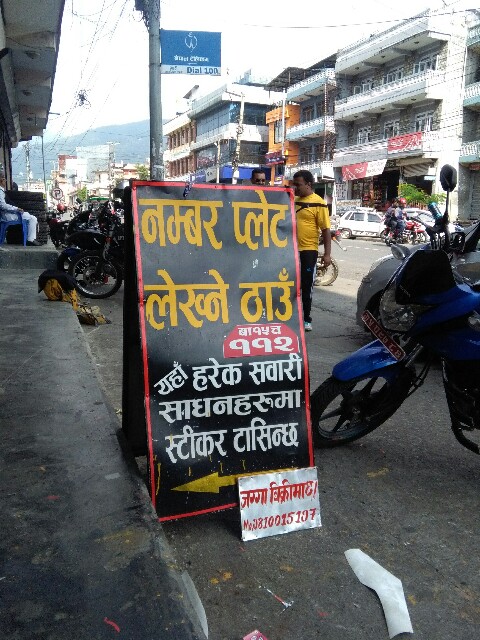バイクのナンバープレートがカトマンズへの道中 振動で割れてしまったので、今日はその取り付けとお土産物、カップケーキとクッキーの買い出し。