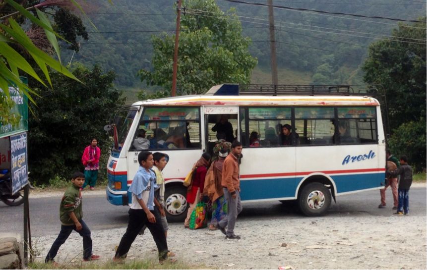 ハイウェイに下り、バスに乗ってヤギと一緒にポカラの町に戻って行きました。