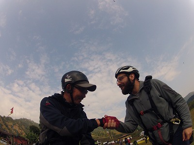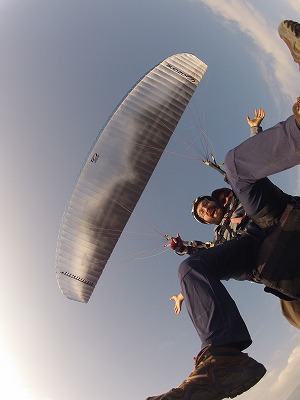 彼はよく座ったり腰の引けたお客さんのサイドに立ち、上手くバランスを取りながらテイクオフしていくテイクオフの上手いパイロットです。
