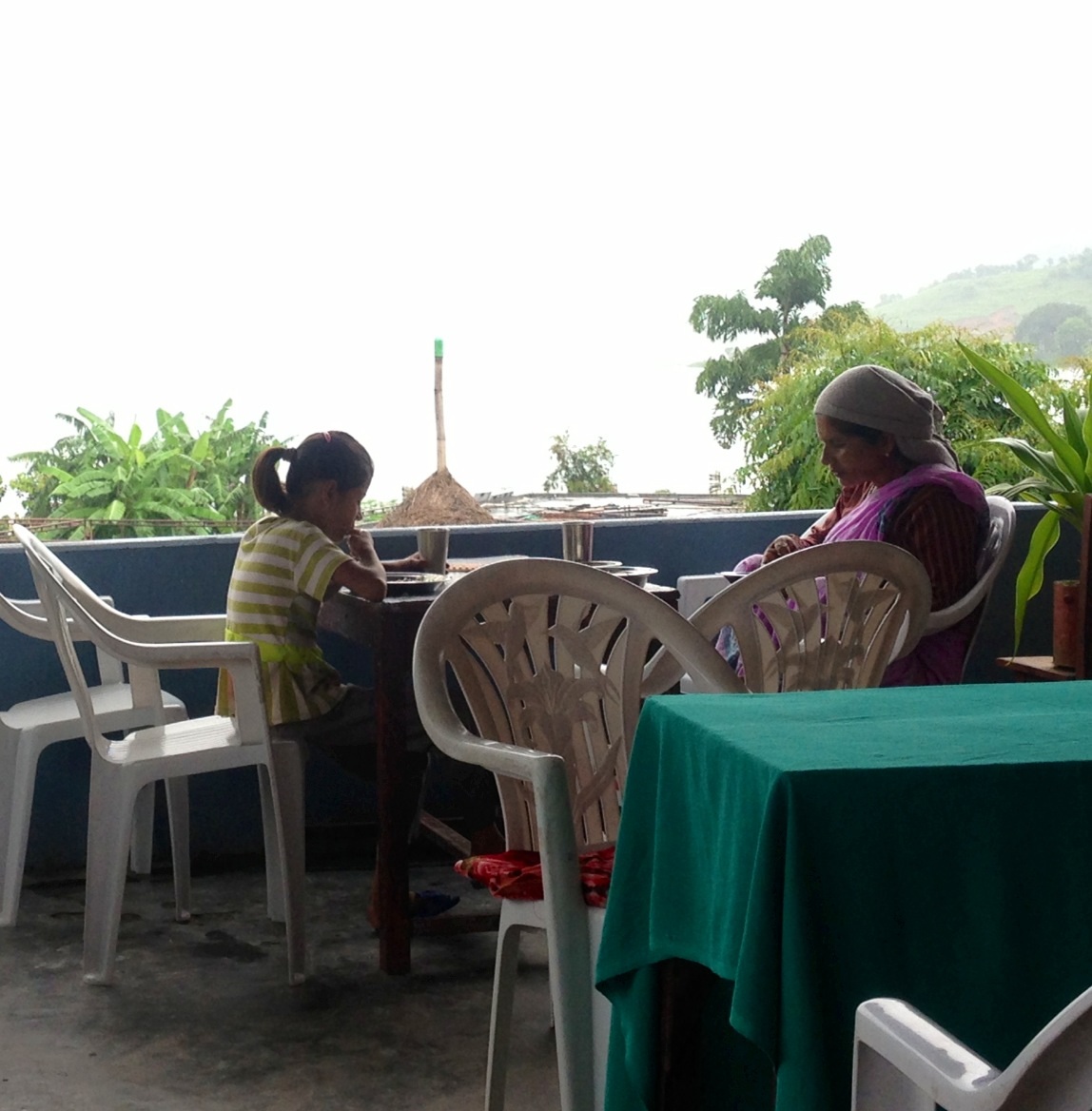朝11時、食事をするビスヌーとシディカ。
