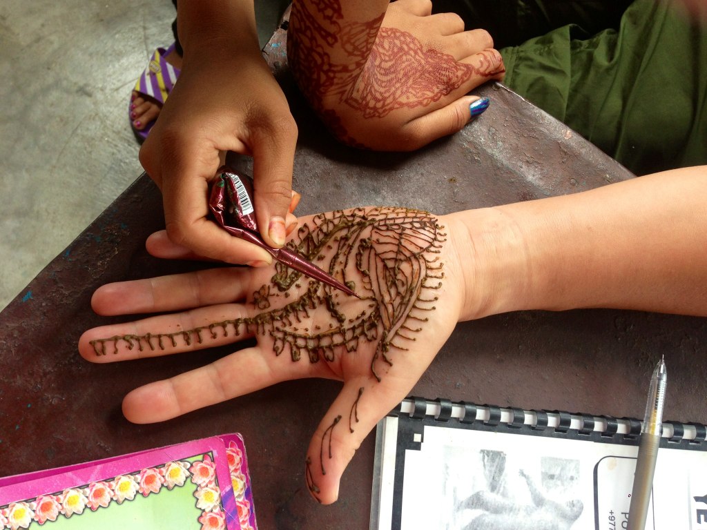 今がこのペインティングのシーズンだそうで、ほとんどの女性の腕に模様が描かれています。
