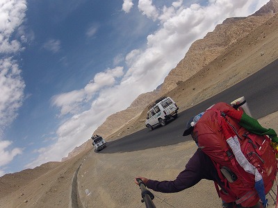 ハイウェイを歩いてラマユルまで向かっているので、当然この道を歩いている人など1人もいなく、行き交うのは車だけです。