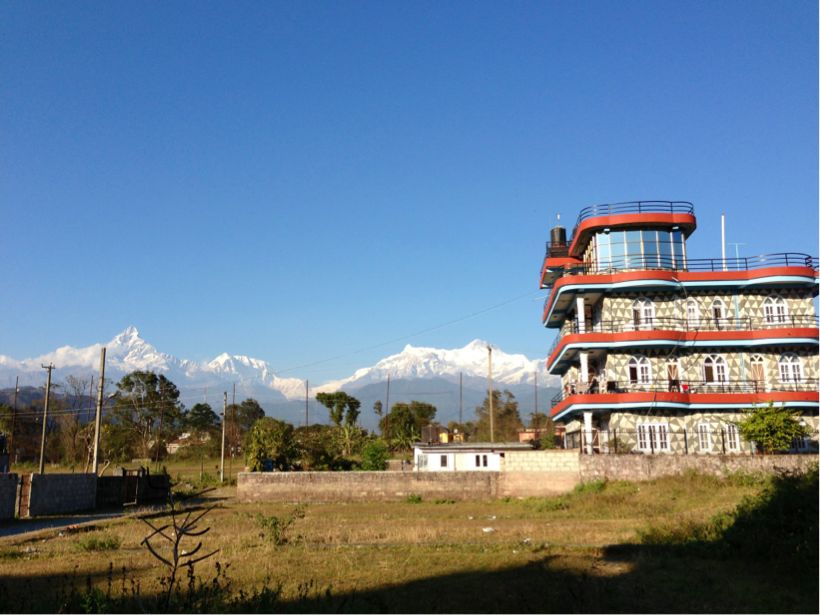家の手前にはゴルフ練習場があり、開けていて、ヒマラヤが一望できます。