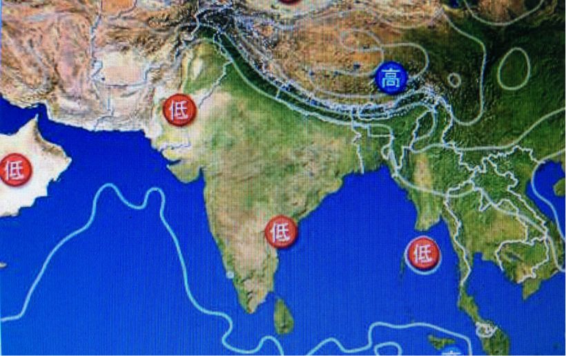 明日の雨予想では、ネパール全土が雨雲の中に…