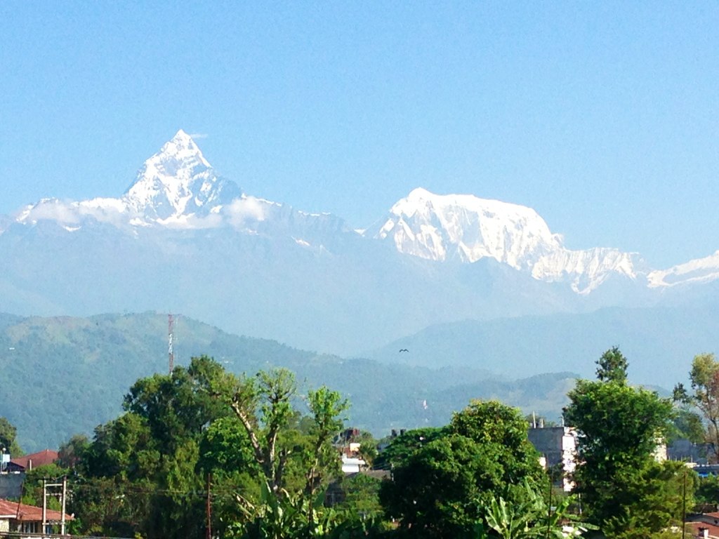 後ろにはアンナプルナ山系が見えている…