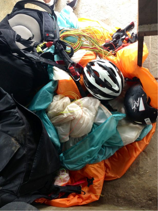 お客さんは先に降りてもらい、私達はそのままグライダーを積める屋根のある車が来るのを待って下に降り、いつ雨が来てもいいように、そのまま屋根があるランディング場へ直行。