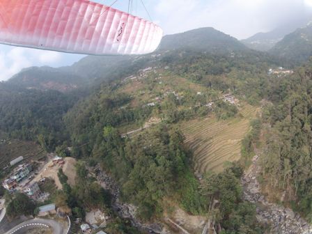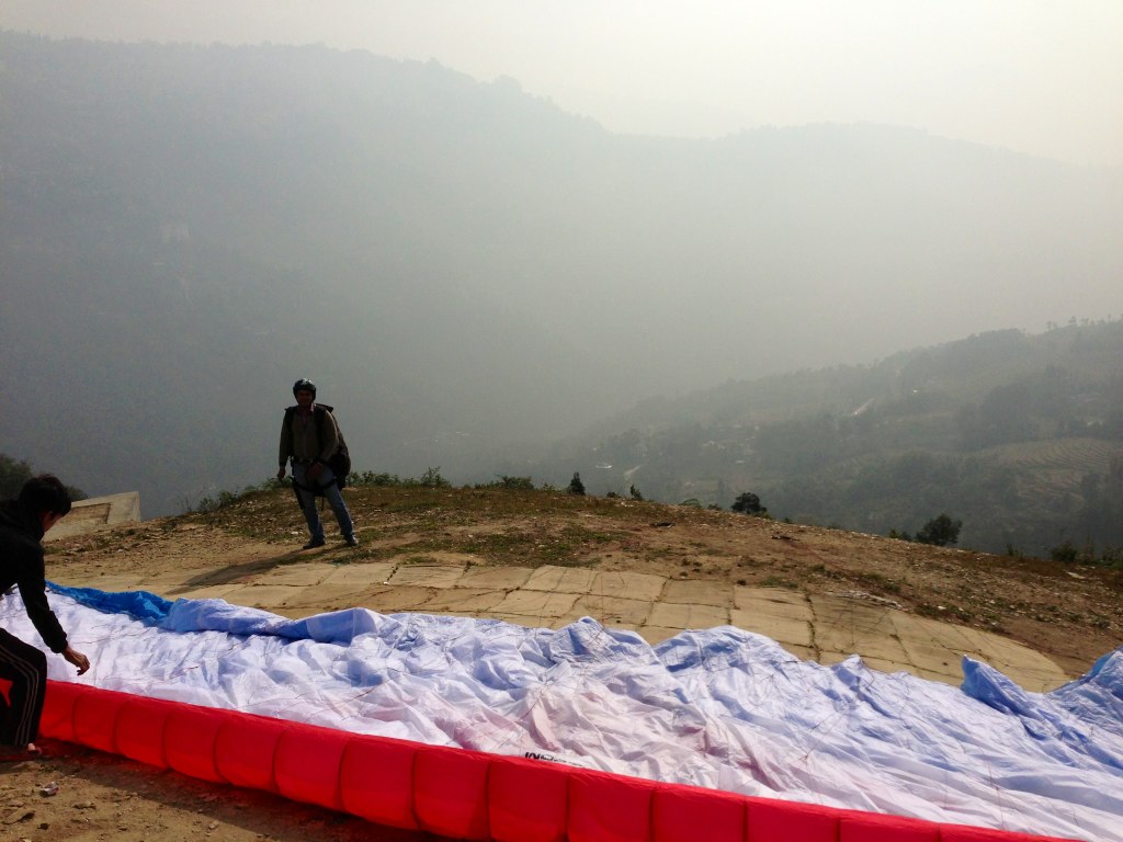 更にこの写真にある向こうの山の山頂にもテイクオフがあり、そこから飛べば標高差1000mあり、天気がよければカンチェンジュンガが見えるそうです。