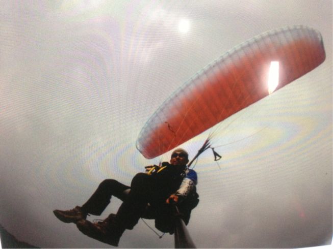 朝一はタンデムと一緒に上がり、タンデムのテイクオフ場から飛びました。