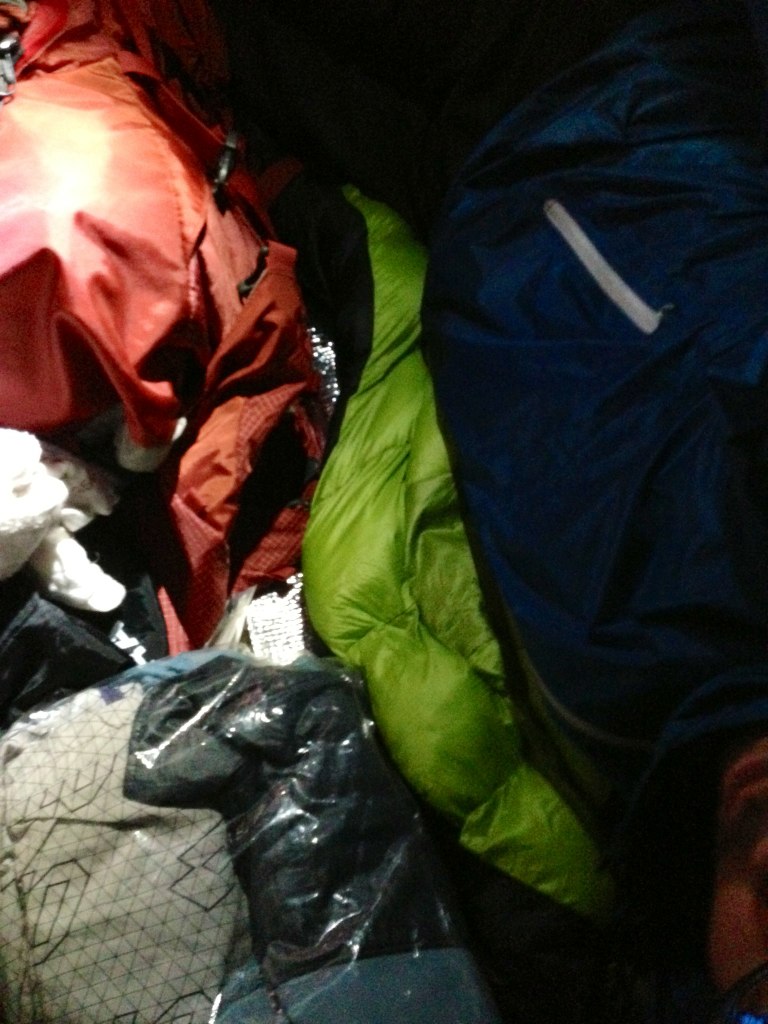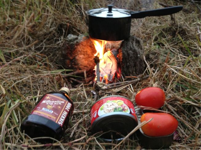 Paragliding tools,just one spare T shut and soks,rice noodles tomato some fish pack