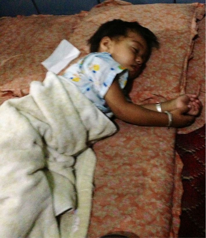 マンガ本の横で寝ていた、アニールの子供 2歳… 癒されます。