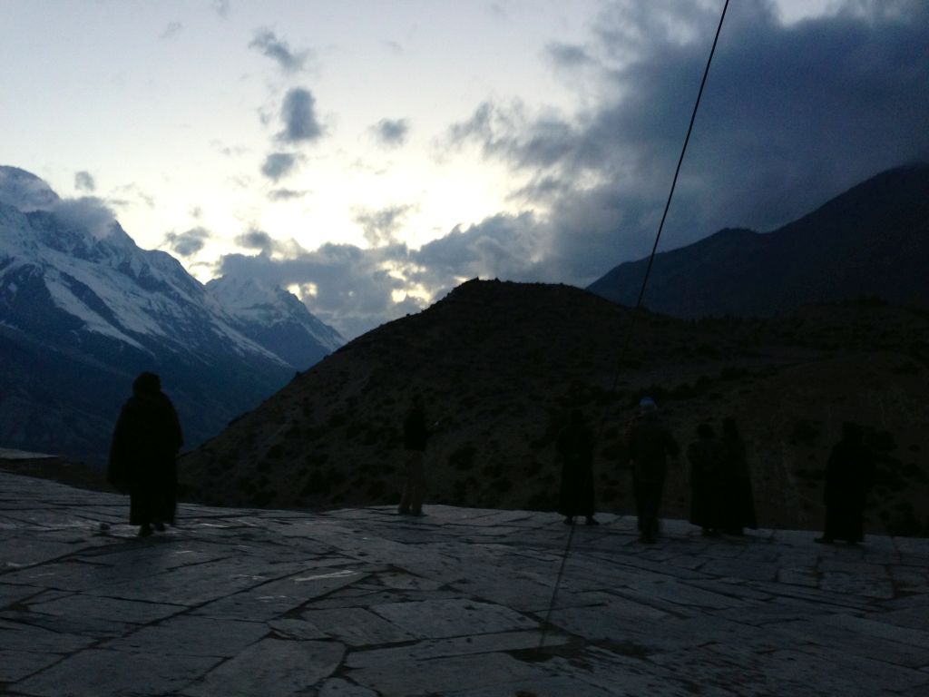 朝6時に外に出ると、後ろの空はまた薄暗く、山からの吹き下ろしの風も強い状況…