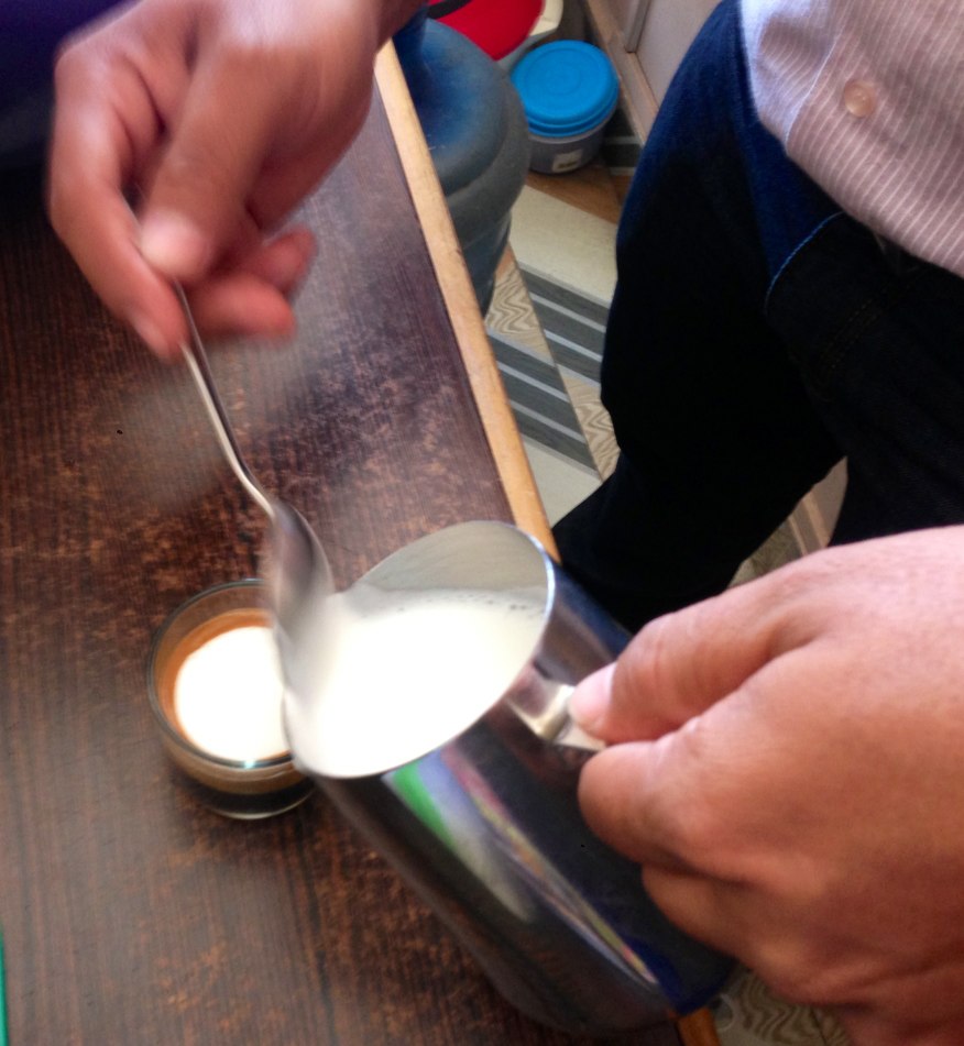 その泡立った部分だけをエスプレッソの上に載せます。