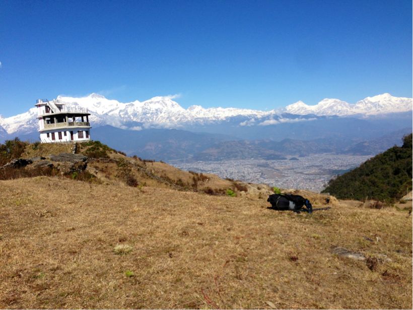 その点 マティカハンはアンナプルナ+ダウラギリ 全体が見渡せ、しかも同じ方向にストゥーパ、サランコット、ポカラの街が3段重ねで見える。