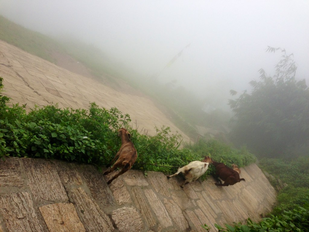 朝 サランコットに上がったものの、霧の中… 次第に雨が落ちて来て、キャンセルして、ジープが迎えに来るのを待つ事に。