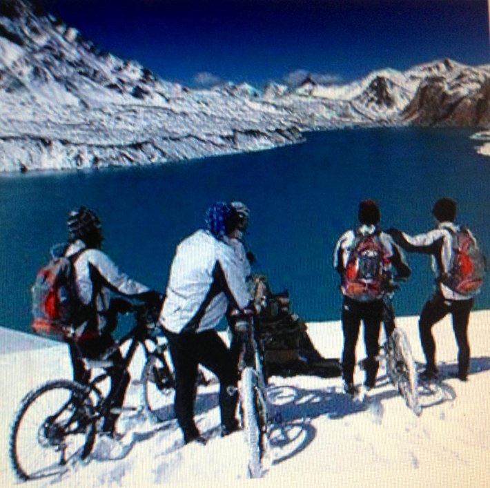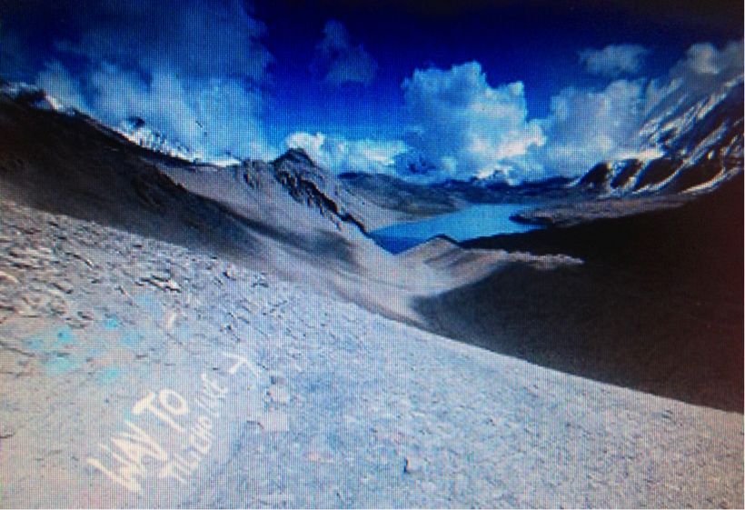 その後は最も標高の高い湖 ティリチョレイク4920mへ向かいますが、雪が多く、今日は雲の中なので、実際登れるのか?飛べるのか?