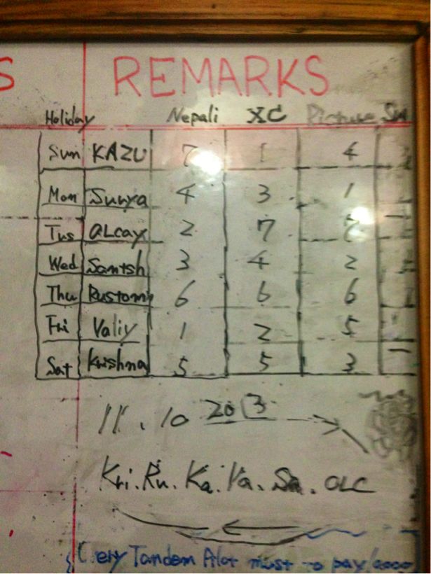 オーナーで準キャプテンのクリシュナが管理している、パイロットの管理ボード。