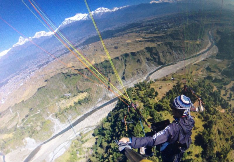 彼はこの一年間、ポカラから一度も離れる事なく飛び続けています。